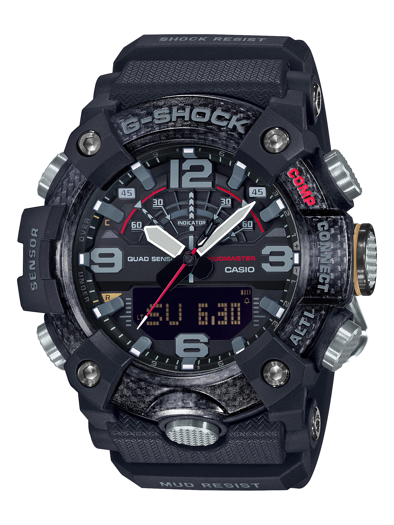De la série MASTER OF G MUDMASTER, la montre conçue et fabriquée pour résister aux environnements terrestres difficiles, viennent des modèles en résine de carbone qui intègrent un nouveau type de structure.